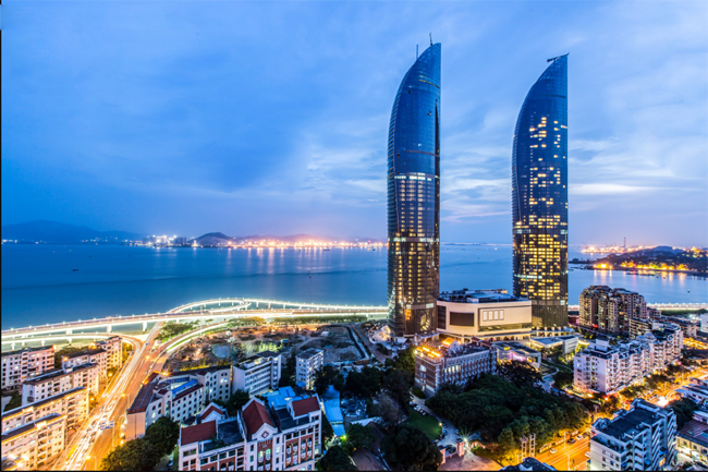 对建筑物群,通过使用不同的光色,照亮能够凸显出建筑物特色的部分,通过使其他地方保持黑暗,进行亮化的对比。