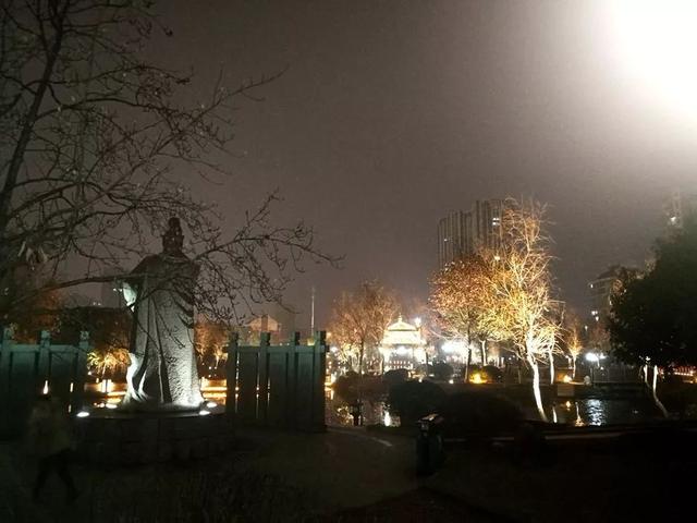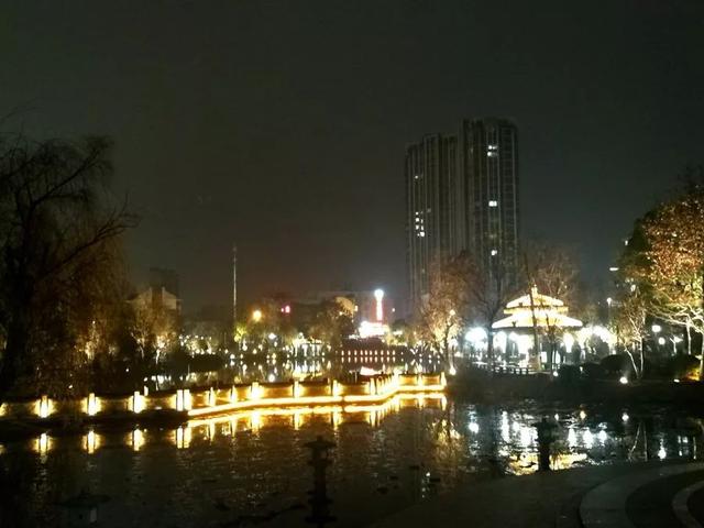 昨夜走进公园,仿佛再次看到黄浦江边、上海滩上灯火璀璨的明珠。灯如繁星,梯次分布;色彩各异,柔和亲切;倒映池塘,粼光闪闪。禁不住地为工人师傅感叹,严寒冬天里依然坚持室外工作,为我们送上温暖的光芒;禁不住地为政府人员点赞,想得周到周全,让我们踏着亮光漫步。